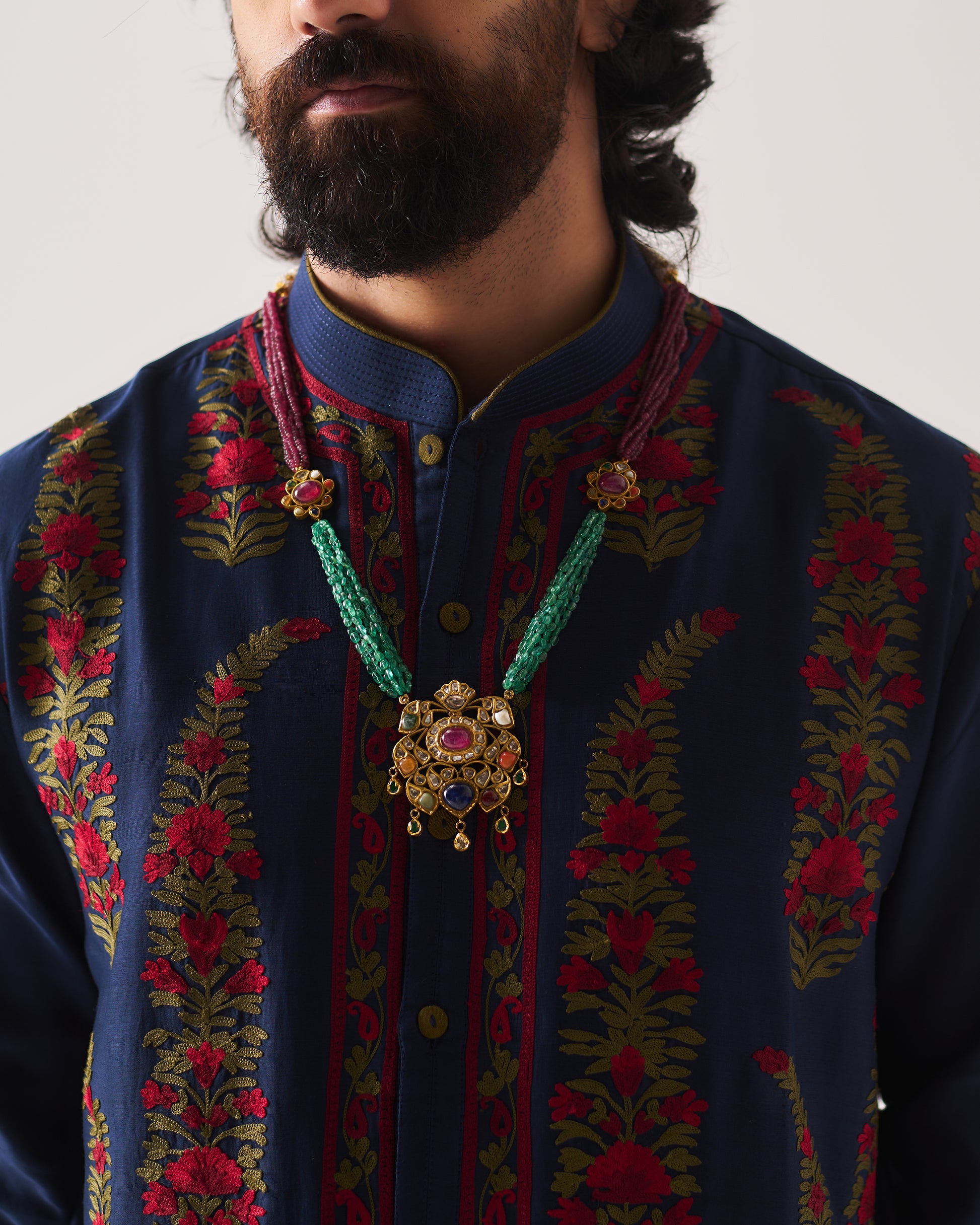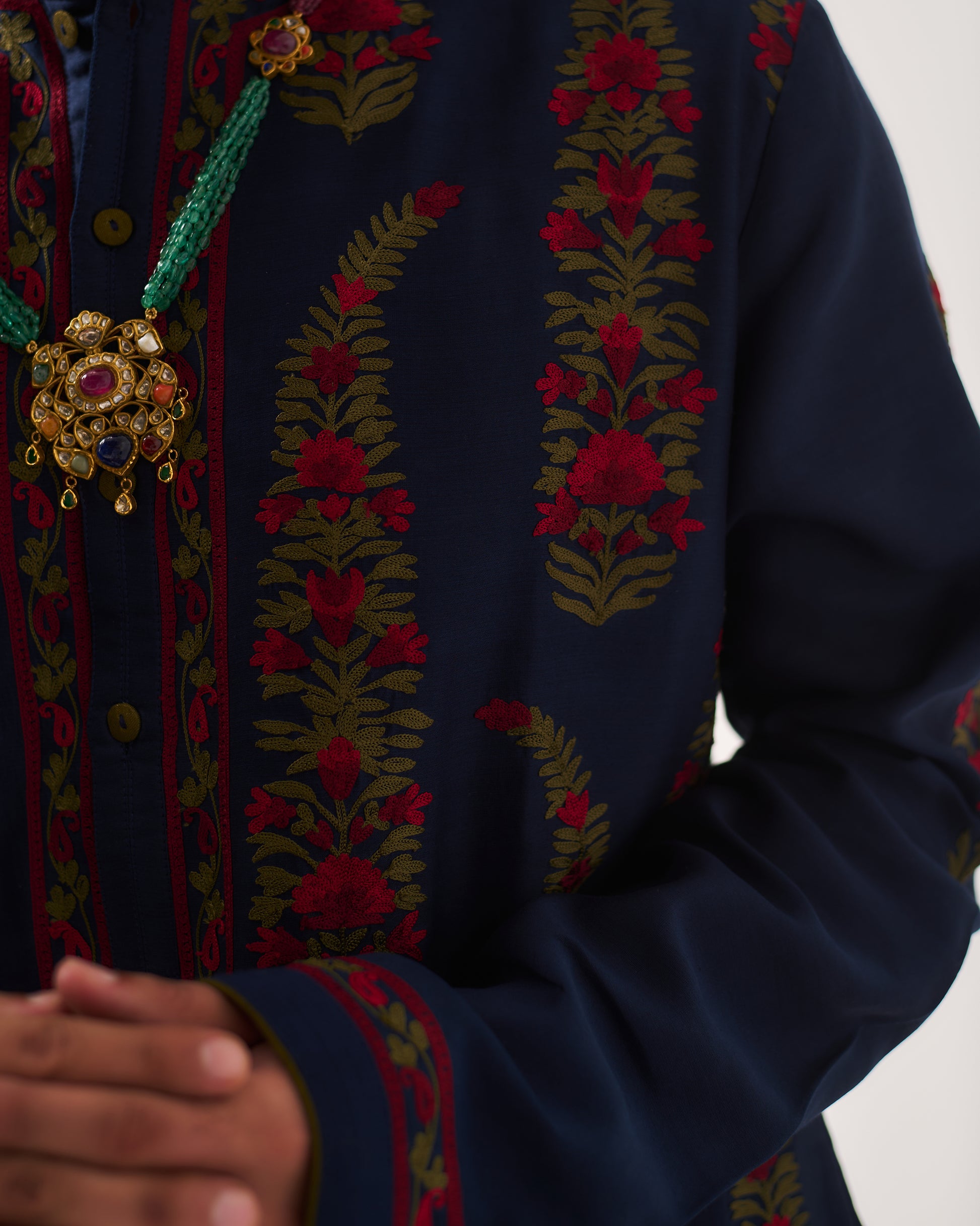 Chanderi Handloom Kurta paired with Pyjama Pants and Dupatta. Featuring Intricate Multicolour Aari Embroidery.