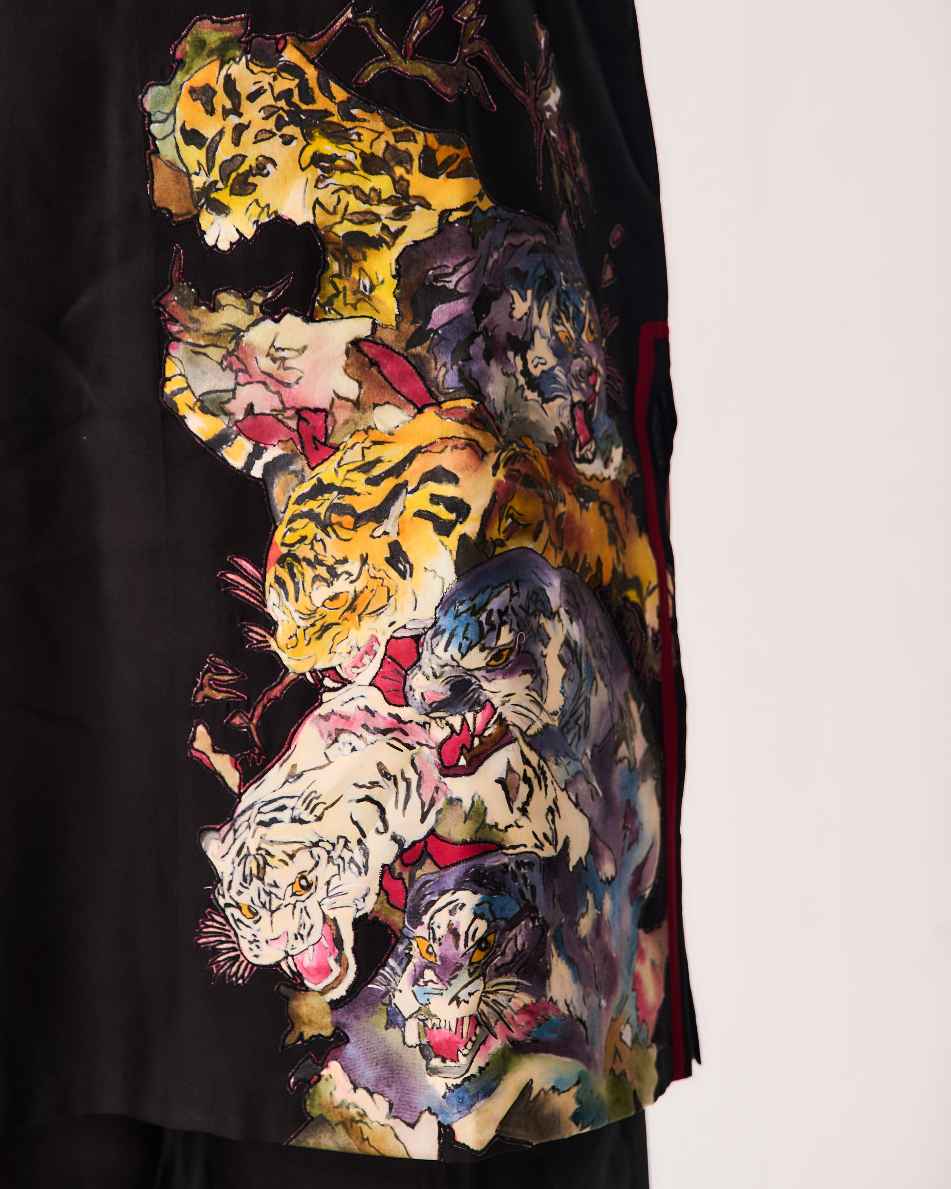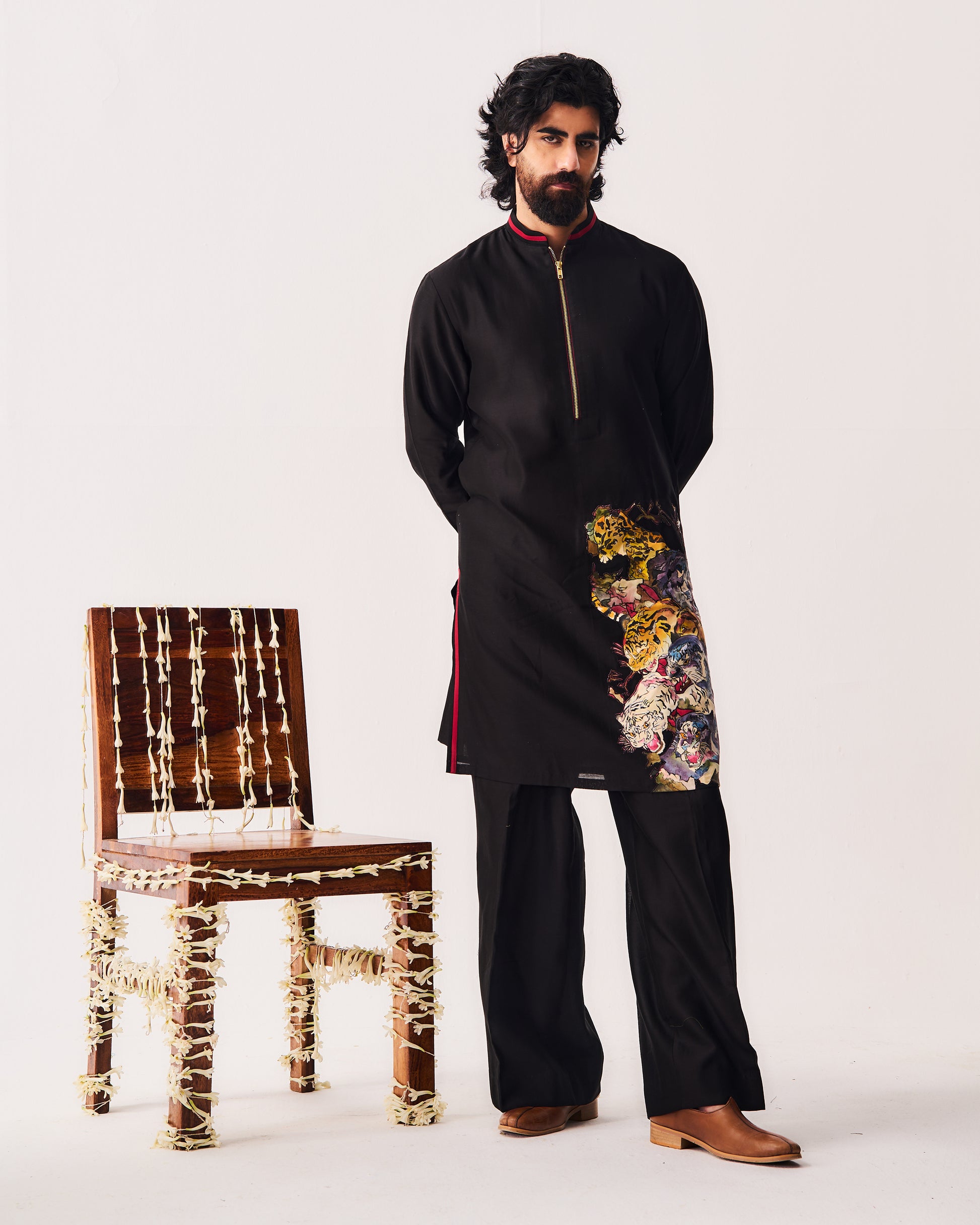 Chanderi Handloom Kurta paired with Flare Pants. Featuring real Hand Paint. Expect a slight variation being Real Hand Paint.
